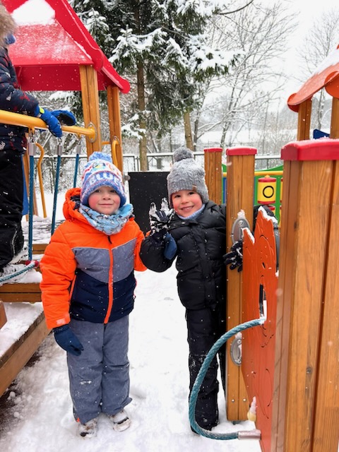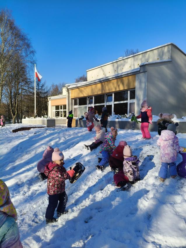W tym roku zimowa aura sprzyja zabawom na powietrzu , jeśli tylko nie ma szkodliwego krakowskiego smogu Rozgwiazdki spędzają czas w przedszkolnym ogrodzie i na wesołych zabawach na śniegu i ze śniegiem.