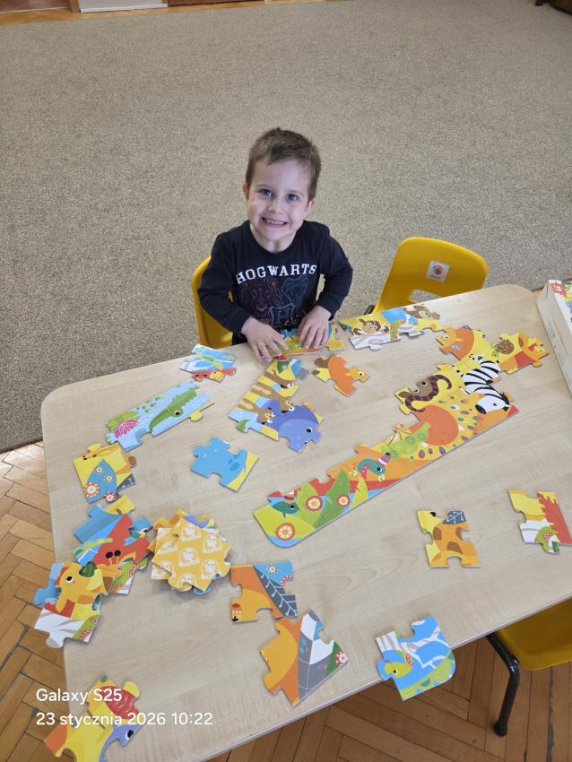 Grupa Żółwików radośnie spędziła czas na zimowych zabawach na śniegu. Dzieci lepiły bałwana, rzucały się śnieżkami oraz brały udział w wesołych zabawach ruchowych na świeżym powietrzu. Było dużo śmiechu, radości i niezapomnianych wrażeń. Zimowa aura sprzyjała aktywności, a wspólna zabawa dostarczyła wszystkim wielu pozytywnych emocji.
