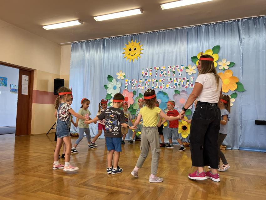 Spotkaliśmy się na sali gimnastycznej, gdzie wśród ogólnej radości zaprezentowaliśmy swoje piosenki i przywitaliśmy się wzajemnie.