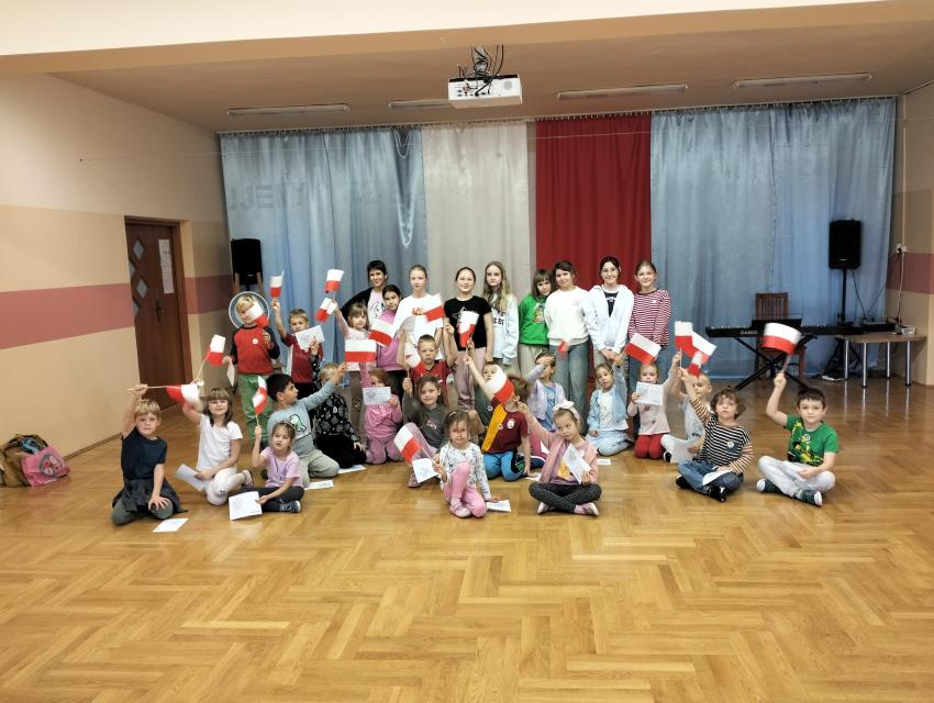 W dniu 3.11 (poniedziałek) odwiedziła nasze przedszkole grupa dzieci z klasy 5. Uczniowie przybliżyli grupie starszaków najważniejsze wiadomości dot. Polski. Dzieci poznały najważniejsze symbole narodowe, legendy polskie, a na koniec wszyscy odśpiewali hymn Polski.