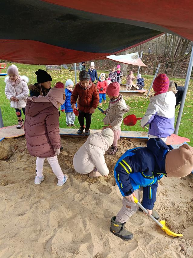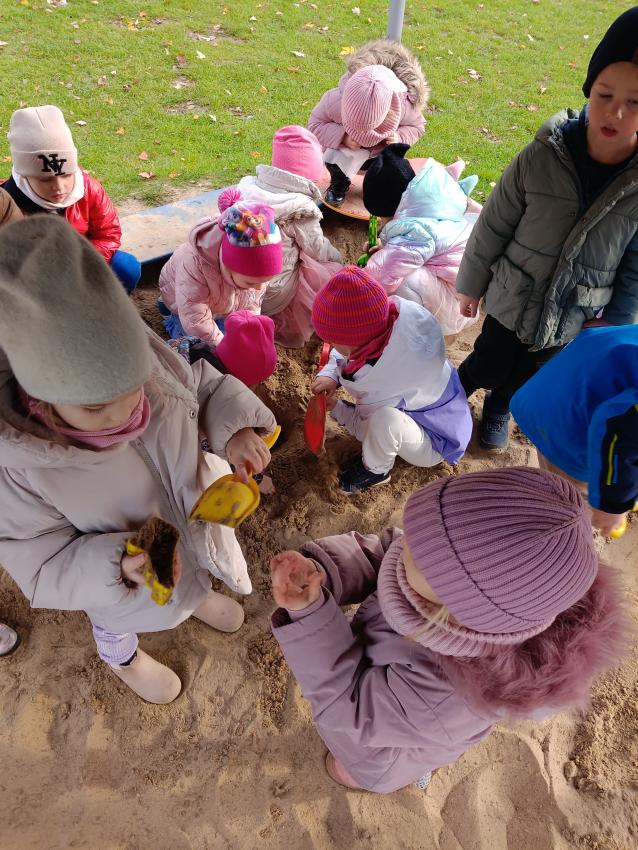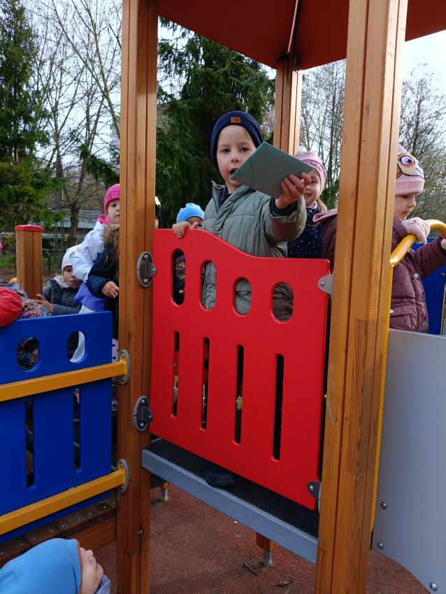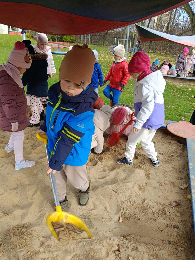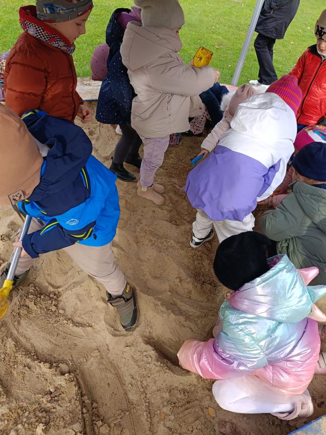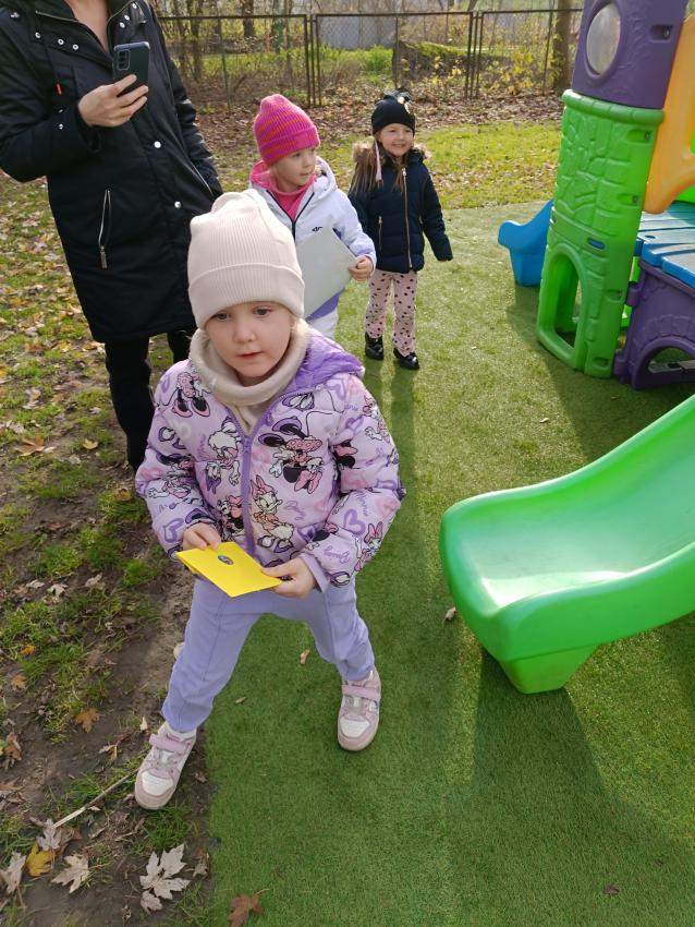W pewien listopadowy dzień przedszkolaki z Żółwików wybrały się do ogródka na poszukiwanie skarbu. Na dzieci czekało 8 zadań i zagadek ukrytych w różnych punktach naszego ogródka. Po wykonaniu każdego zadania przedszkolaki otrzymywały elementy układanki, która pokazała gdzie ukryty jest skarb.