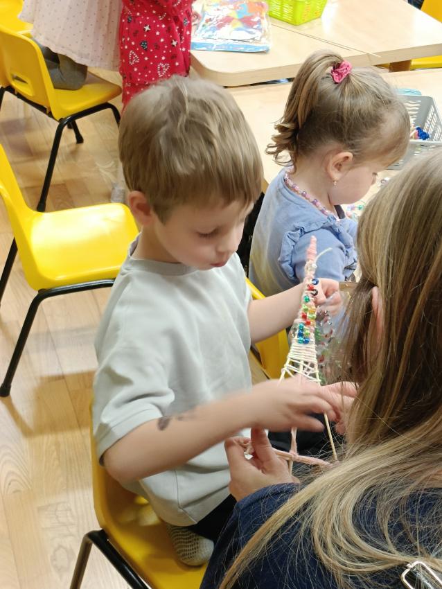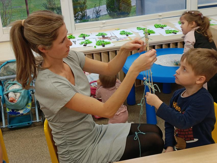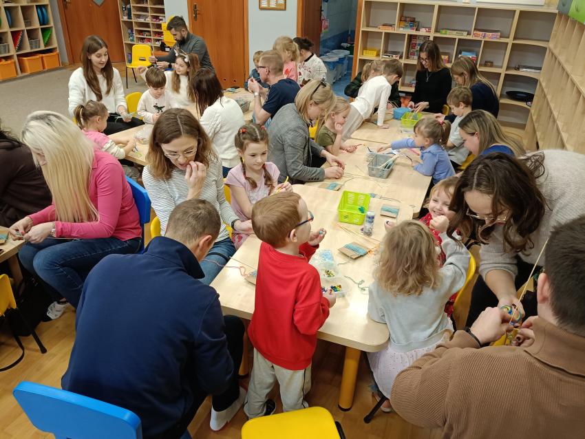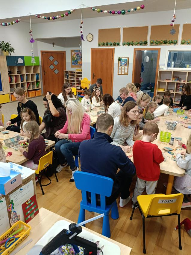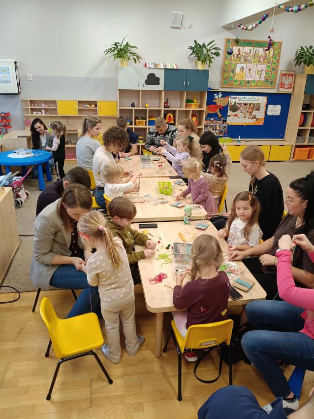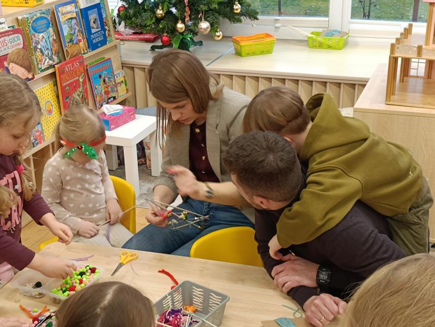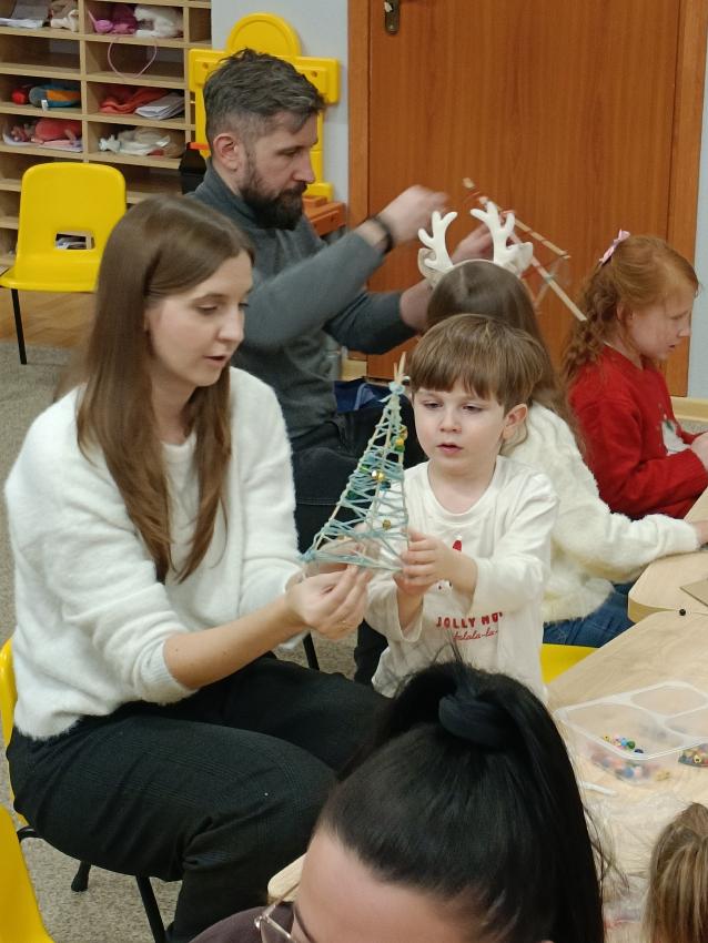 Podczas warsztatów świątecznych przedszkolaki wraz z rodzicami wykonały choinki z patyczków i włóczek. Praca była wymagająca, ale wszyscy świetnie sobie poradzili. Sami popatrzcie!